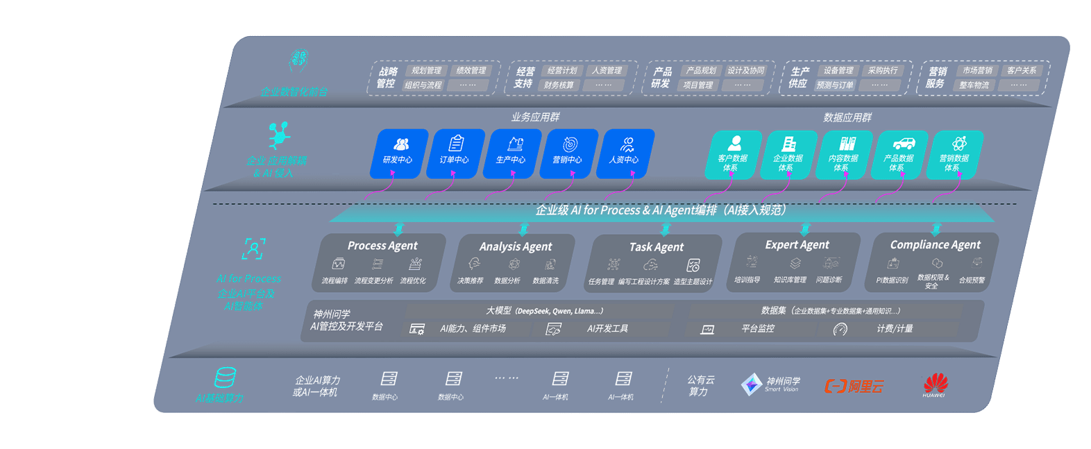 尊龙问学智车解决方案是一套基于AI技术的汽车行业智能化系统,,,,覆盖从底层算力到顶层AI应用的全栈方案。。。方案由算力层、、、、模型层和应用层组成:算力层,,,方案支持多种一体机配置,,,具备云端灵活部署、、、、多云适配以及动态优化计算资源的能力;模型层,,,,尊龙问学平台版提供了企业级AI应用一站式构建与管理平台,,支持基于后训练强化技术的汽车企业专属模型的训练、、、评测和运营;应用层,,,尊龙问学DeepSeek版提供包括超级员工、、智能招采、、智能营销、、、、智能客服、、、AI for BI等一系列解决方案,,,可助力汽车行业实现数字化转型,,,,让管理更智能、、响应更敏捷。。。